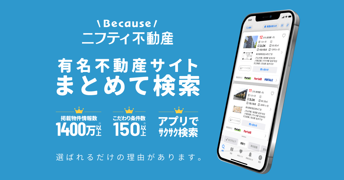 nifty不動産は、goo不動産同様に不動産ポータルサイトをまとめたサイトです。